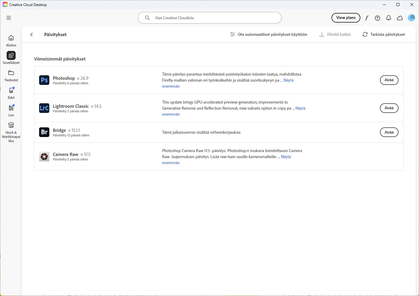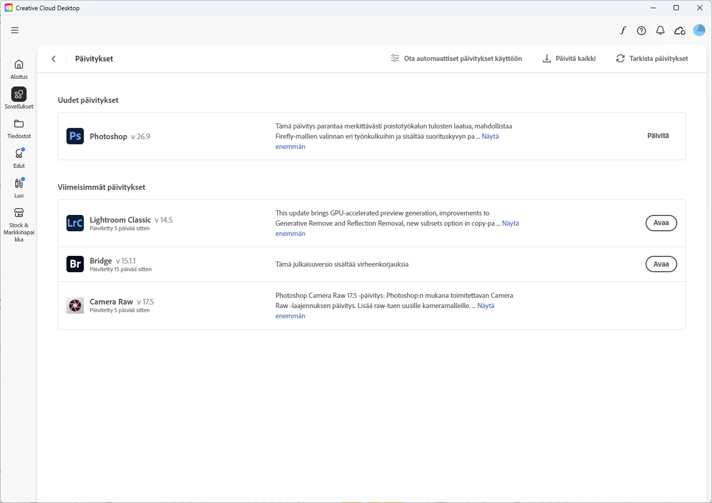 When I go into creative cloud and go to updates, It says everything is up to date, (Photoshop Updated 18 days ago). This is the same even if i refresh.