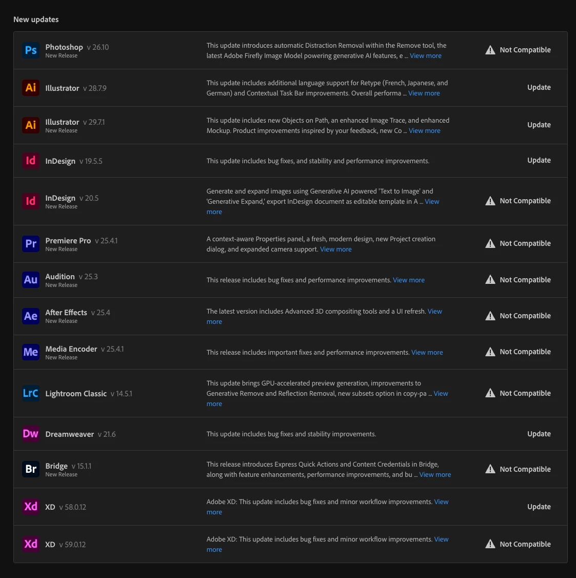 The initial interface says there are 14 updates available. Most of the updates are incompatible with my system so this number is always inaccurate.