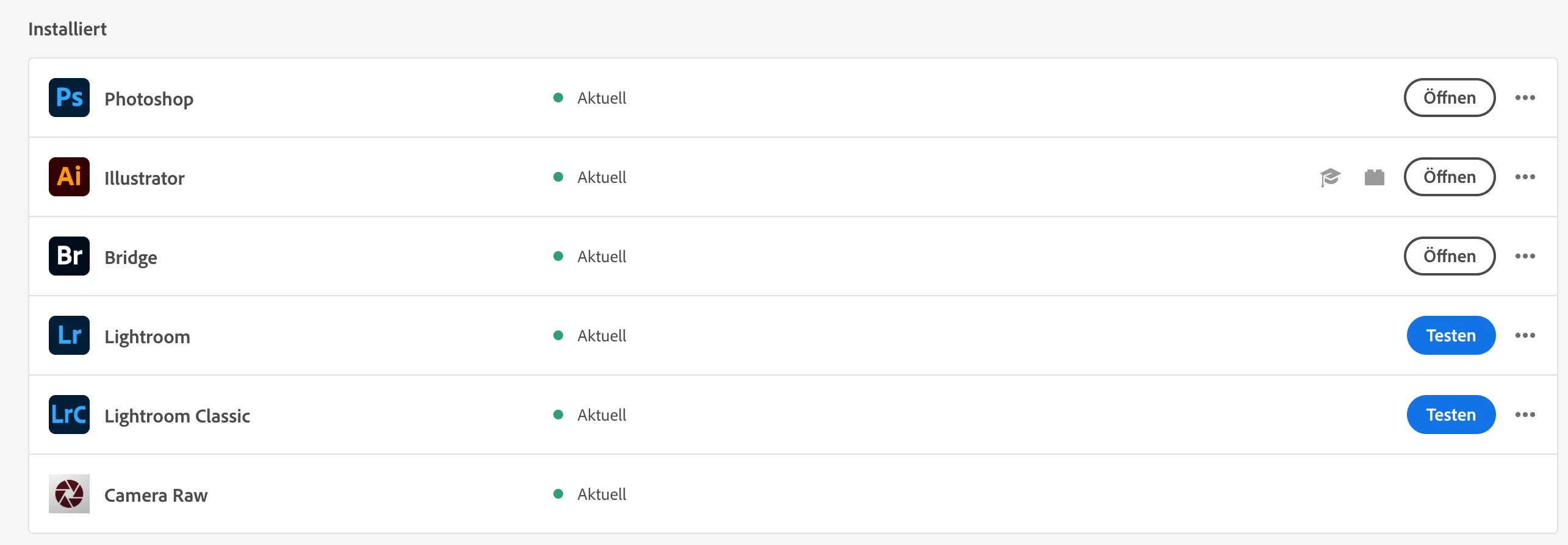 Ich habe u.a. ein gültiges Foto-Abo und ein Illustrator-Abo. Bis vor ein paar Tagen war alles in Ordnung. Heute sind Lr und LrC mit einem Schlosssymbol versehen und ich werde aufgefordert, die Programme zu laden und zu testen. Dies ist unabhängig davon, ob die Programme schon gestartet sind oder nicht. Es ist also ein reiner Cloud-bug.