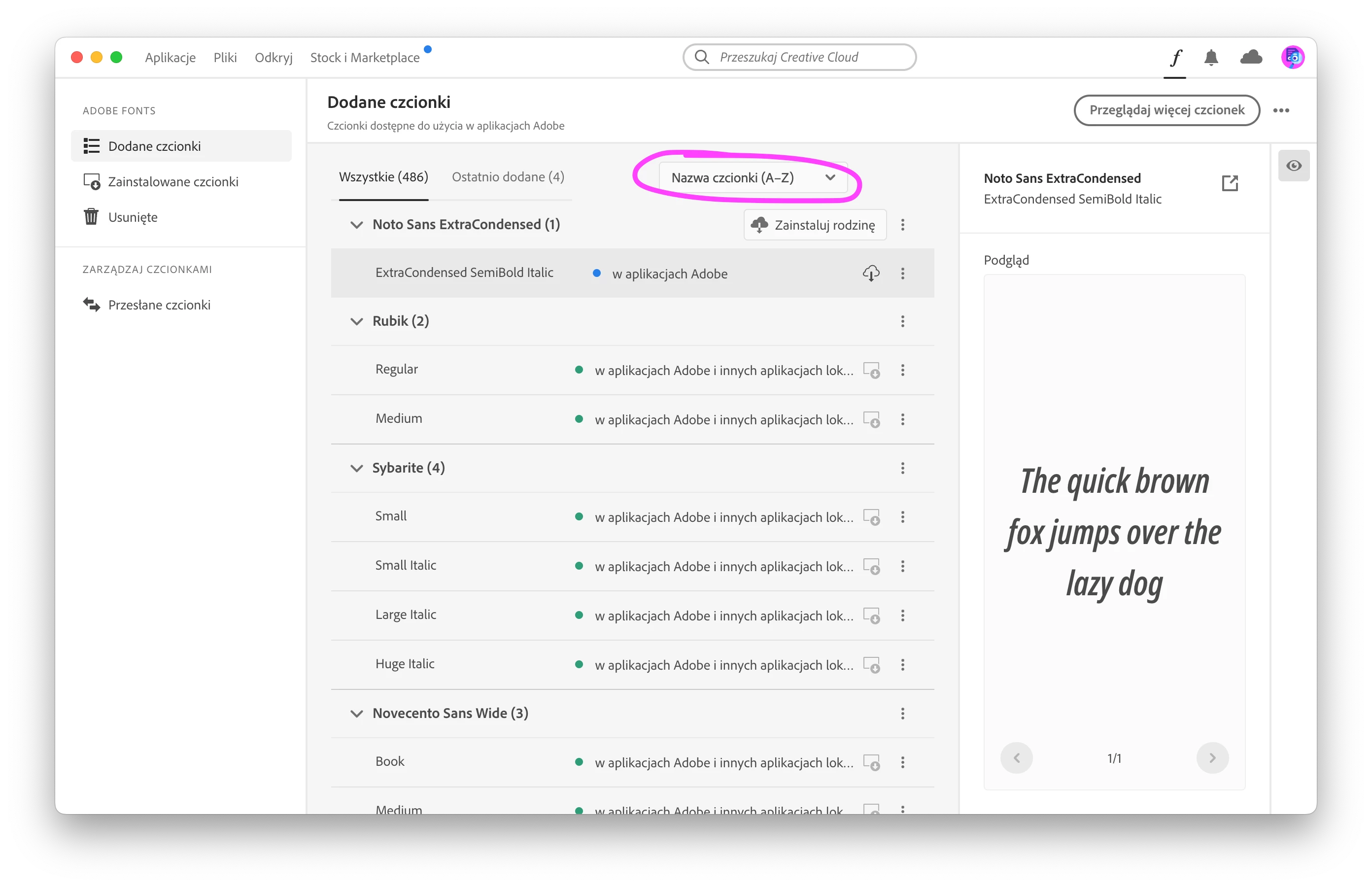 In Creative Cloud v. 5.11.0.522.1 I cannot change ordering of fonts on the list. I can pick whatever sorting order but to no avail. Please refer to attached screenshot. Font names should be in alphabetical order but these are not.