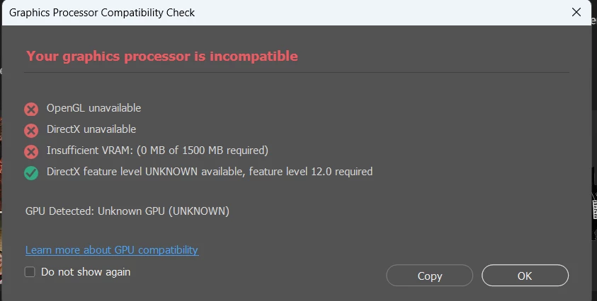I had Adobe Cloud on this same laptop, HP Pavilion with a subscription that ended 12/31/2023 and had no issues with any of the apps. I have a new Adobe Cloud subscription, on the same computer with all drivers updated to the most current drives, and now it is not compatible. Is there anything else I can do to make Photoshop work?