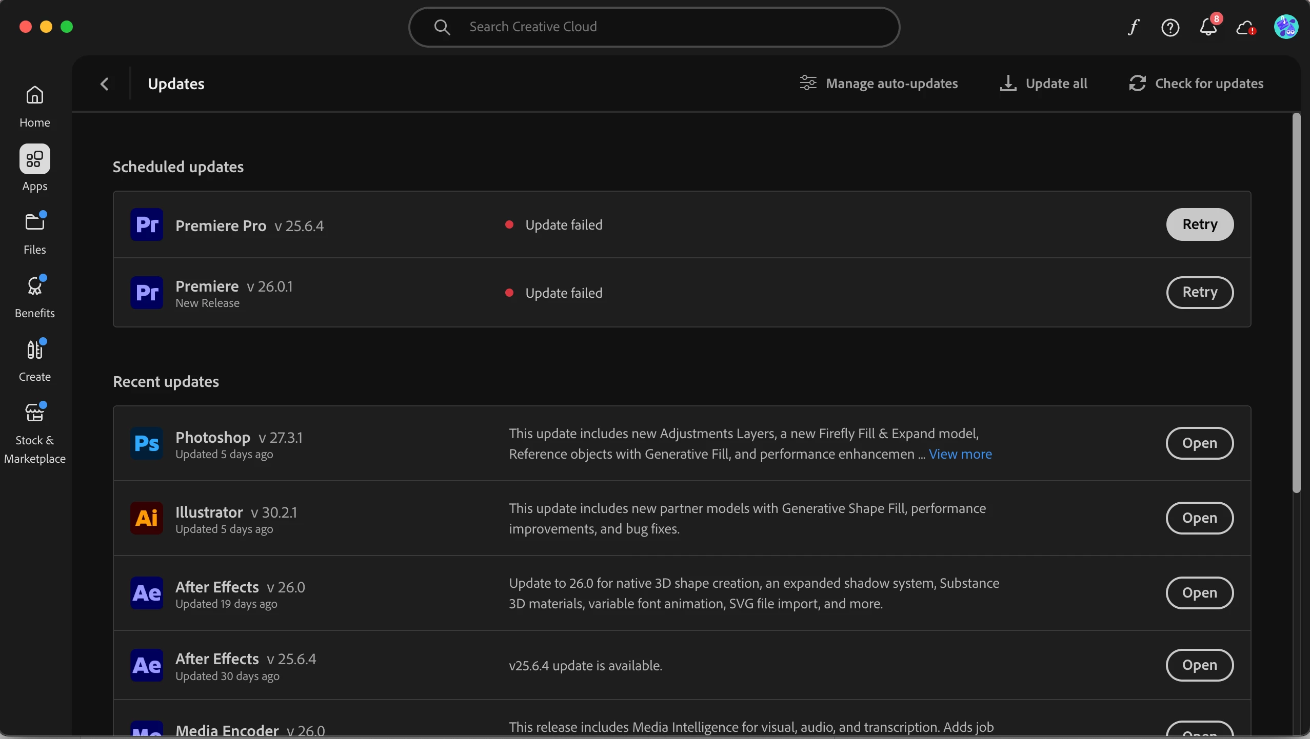 Premiere will not update to 26.0.1