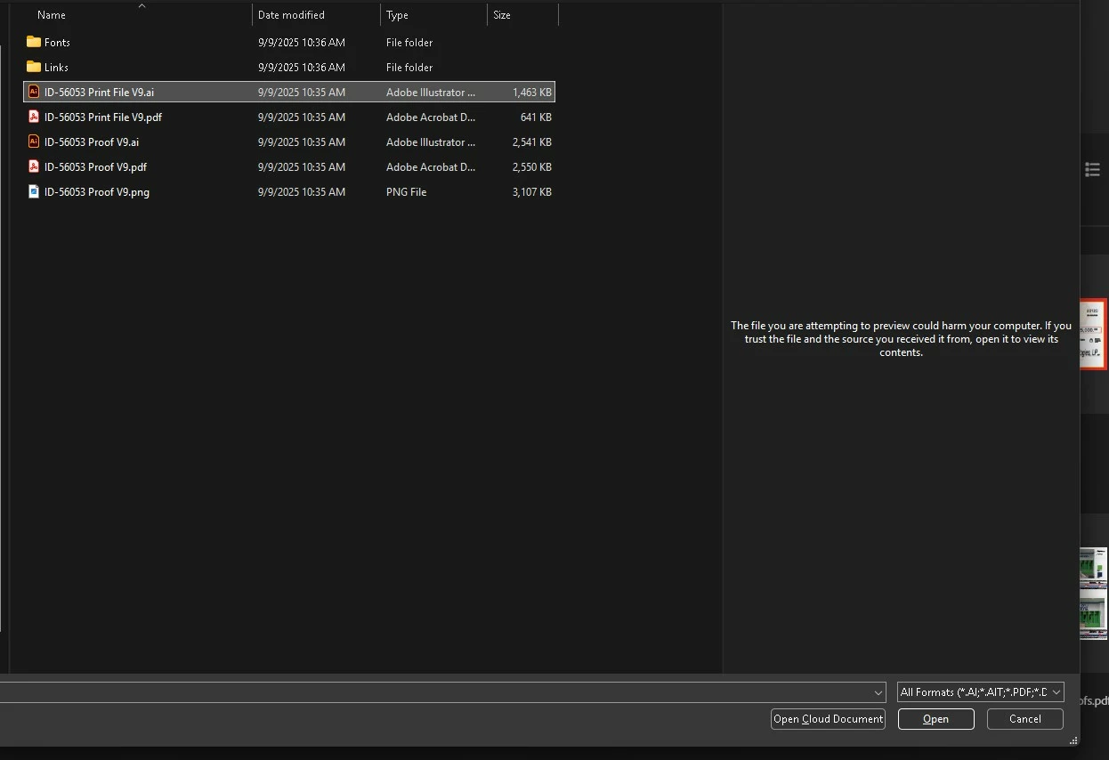 New bug this morning. I can't preview any files associated with Abobe? The preview window in both Illustrator and windows explorer say " The file you are attempting to preview could harm your computer" . Don't know if there was an update or something. i made no changes from yesterday when it was working fine? Please help! Windows 11 PC.