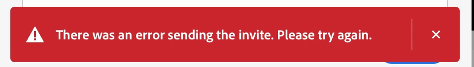 I have experienced this issue a number of times. Logging out and logging in has worked in the past, but does not seem to be working at the moment. I am trying to share 2 Creative Cloud libraries with a member of my team, and I keep getting this error. What might be going wrong, and are there any suggestions? I have tried sharing both via web and the Adobe CC app, and I get the same error message.