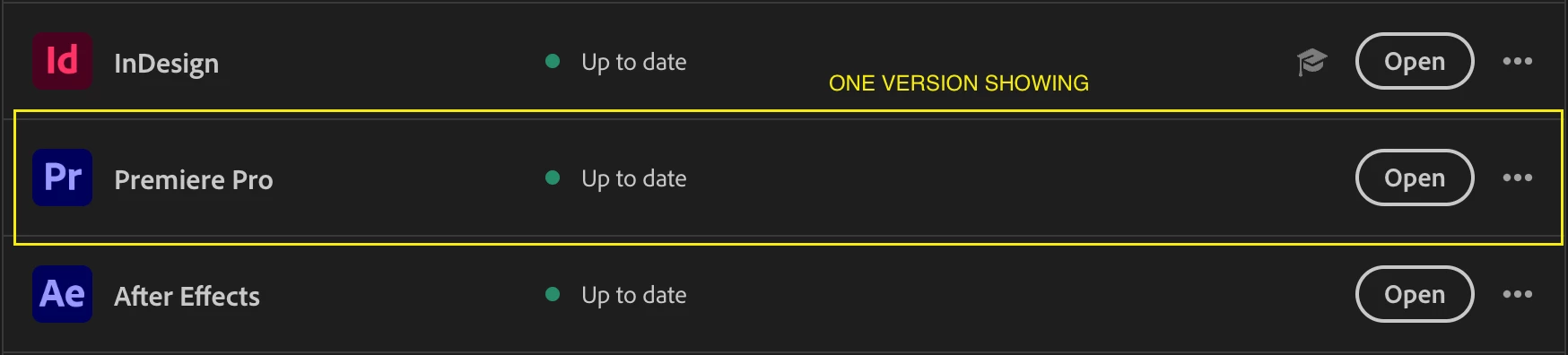 I have installed Permiere Pro Version 24.1.0. However, the old version - Version 22.6.2 - does not appear amongst my list of installed apps in Creative Cloud so I am unable to uninstall the old version in the normal way (by clicking on the 3 dots and clicking 'uninstall'). In my Applications folder, I can see the old version of Premiere under a folder 'Premiere Pro 2022'. Whilst all my other Adobe app folders contain an 'uninstall' icon in them, this one does not. I would be grateful for any advice as to how to uninstall this old version.