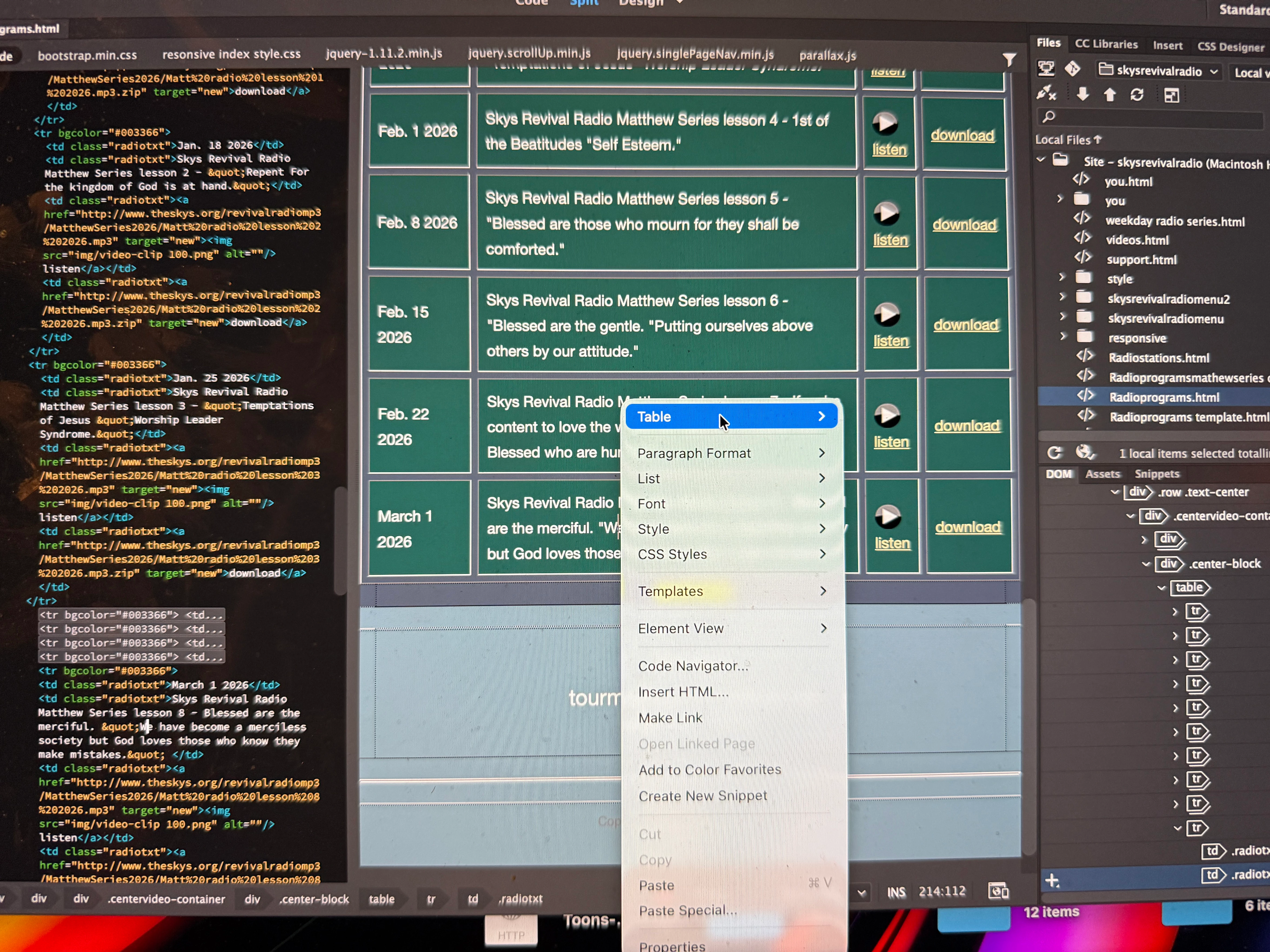 Dreamweaver no longer populates command menu in latest version of iOS. If I right click on a cell and open the menu it no longer has any options when you click on table, paragraph, list, font, etc...
