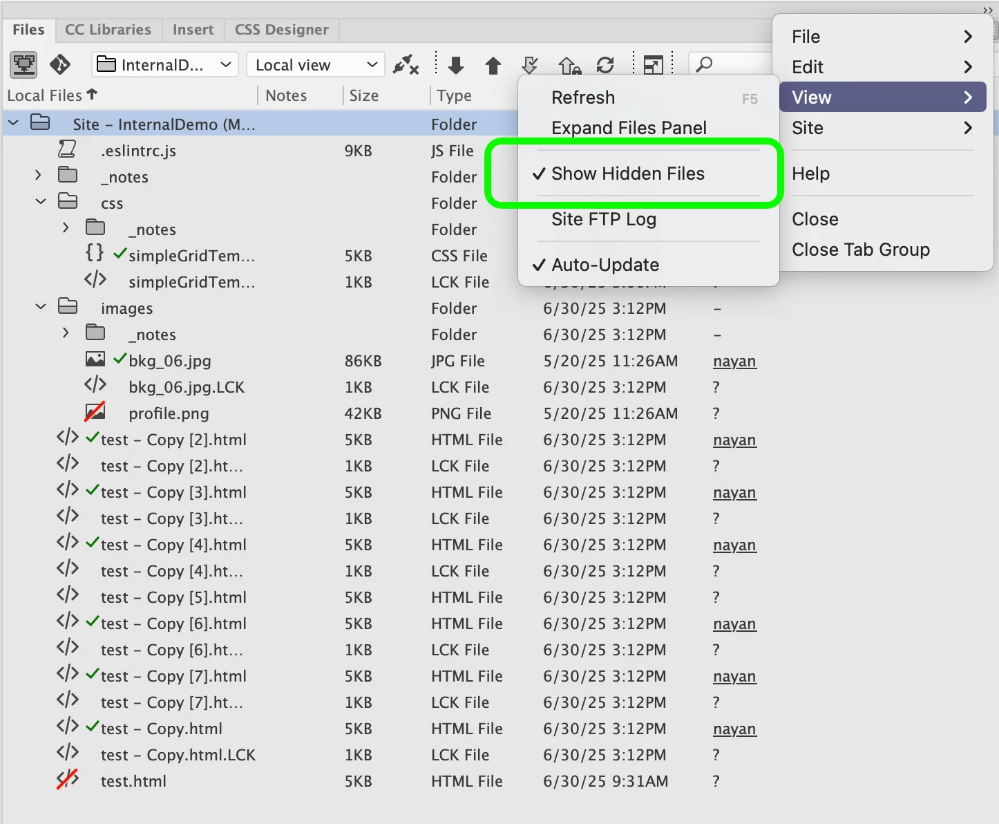 Hidden files (Dreamweaver 21.5)