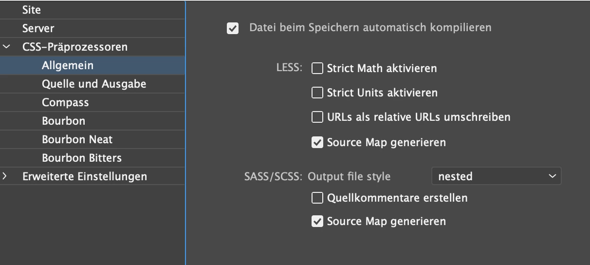 When I use Dreamweaver on Mac OS 15 and want to compile SCSS files into CSS and .map files, it doesn't work, even though the function “Automatically compile files when saving and generate source map” is enabled.