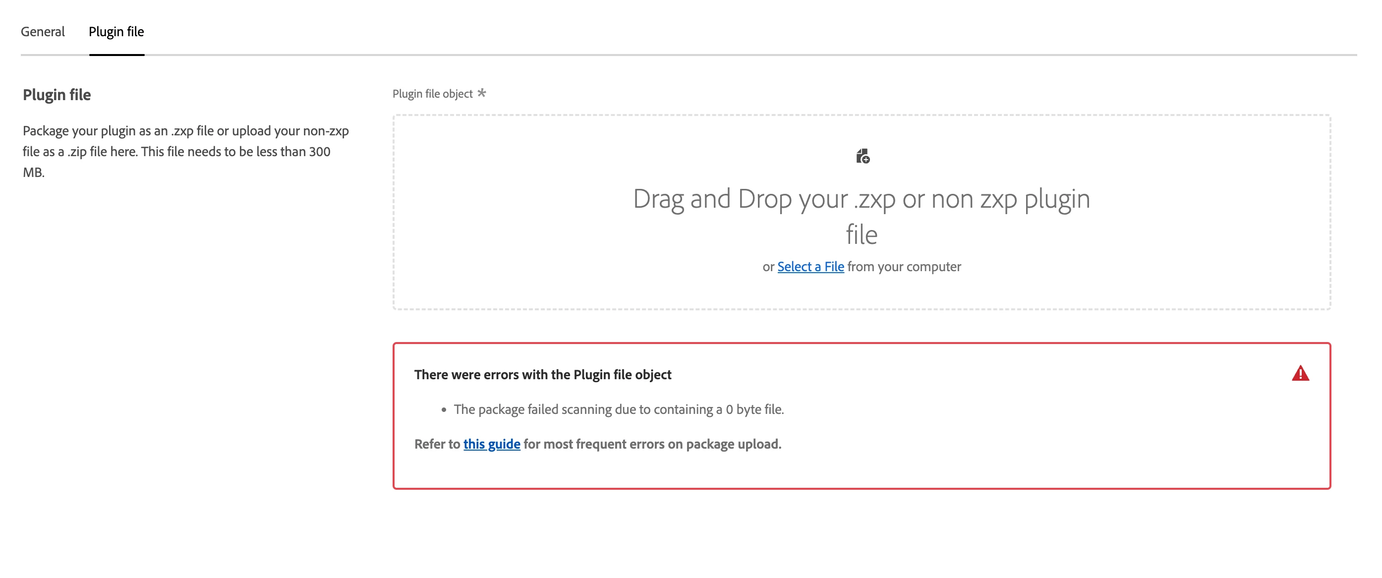 We've been publishing our zxp for over 2 years and when we wanted to upload a new patch to the new distribution portal, it issueed a 0 byte file error. When we removed the only 0 byte file in our package, it then told us that there's error scanning the zxp and told us to try later. No clue on how we can fix it, I have reached out to ccintrev@adobe.com with the zxp attached a couple of weeks ago but never get an answer. I want to know what's going on and what we can do to pass the zxp scanning.