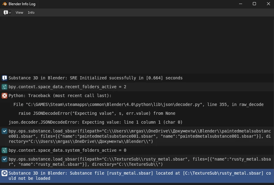 Error: "Substance 3D in Blender: failed to load the Substance file"