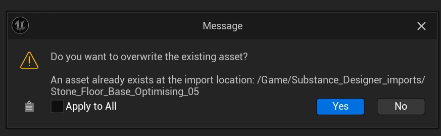 If I click Yes, the file appears in the folder, but I cant use it, and sometimes UE crashes.