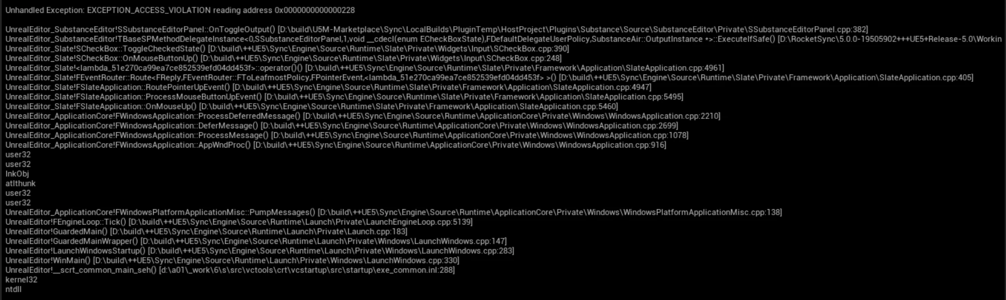 Substance Instance Graph with no generated material crashes Unreal Engine 5