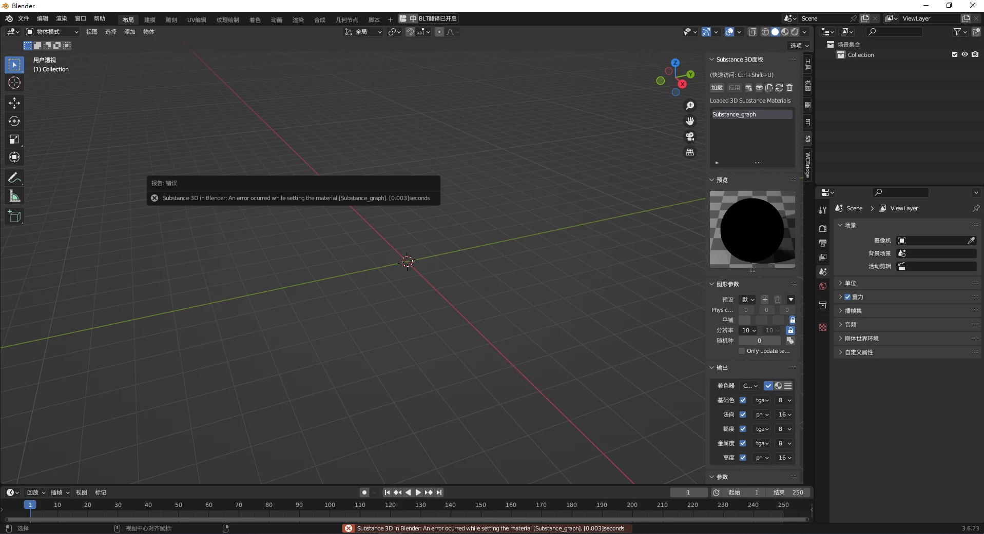 My biggest problem is how to solve the error: "Substance 3D in Blender: An error occurred while setting the material [Substance_graph]. [0.003] seconds"
