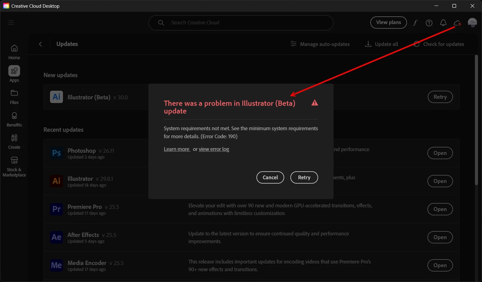 beta version 30.0 refuses to download and install in the creative cloud desktop app