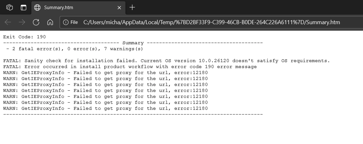 FATAL: Sanity check for installation failed. Current OS version 10.0.26120 doesn't satisfy OS requirements.