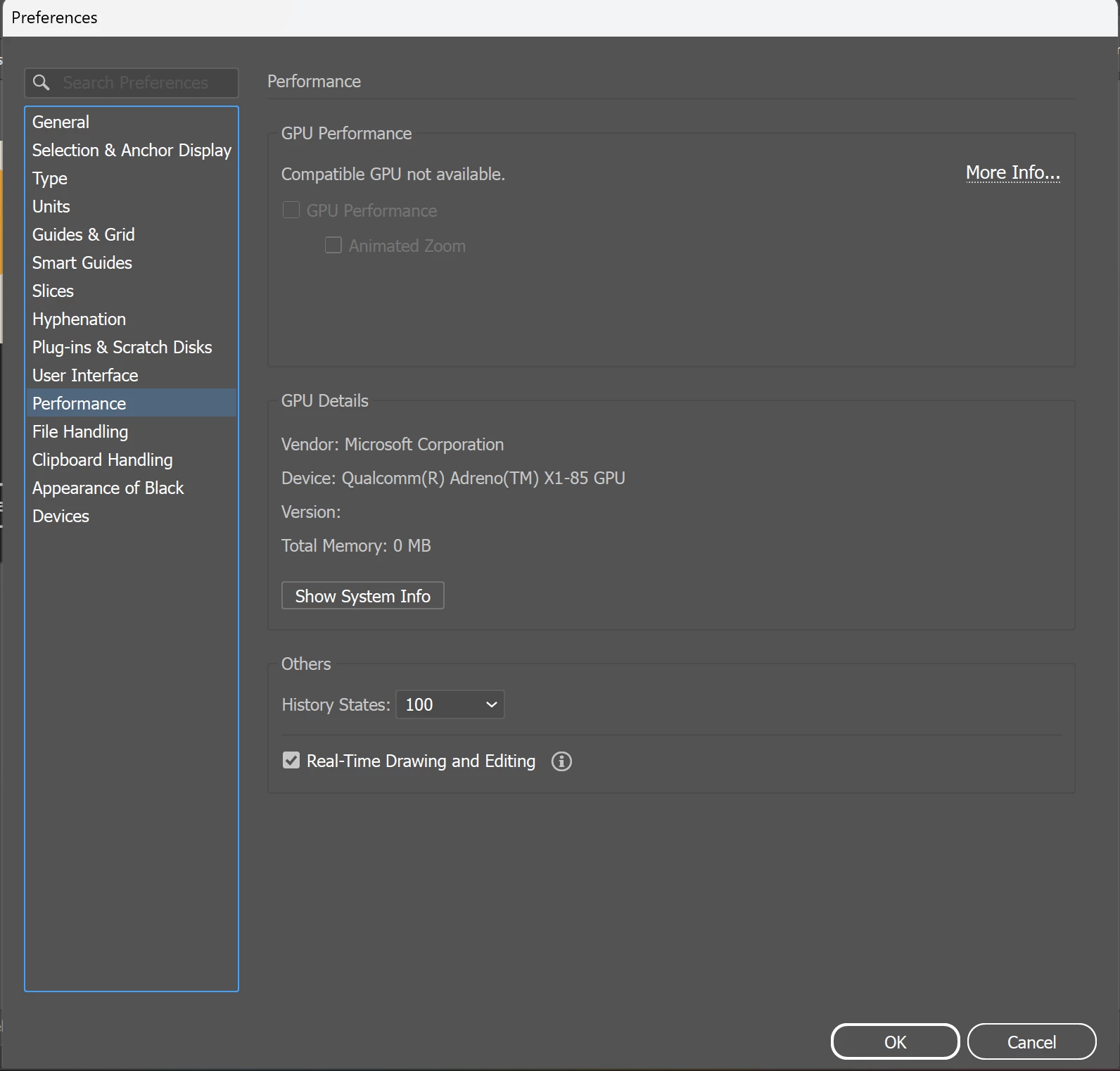 GPU driver not available/detected on Windows ARM - Qualcomm Adreno X Elite (Illustrator v30.00)