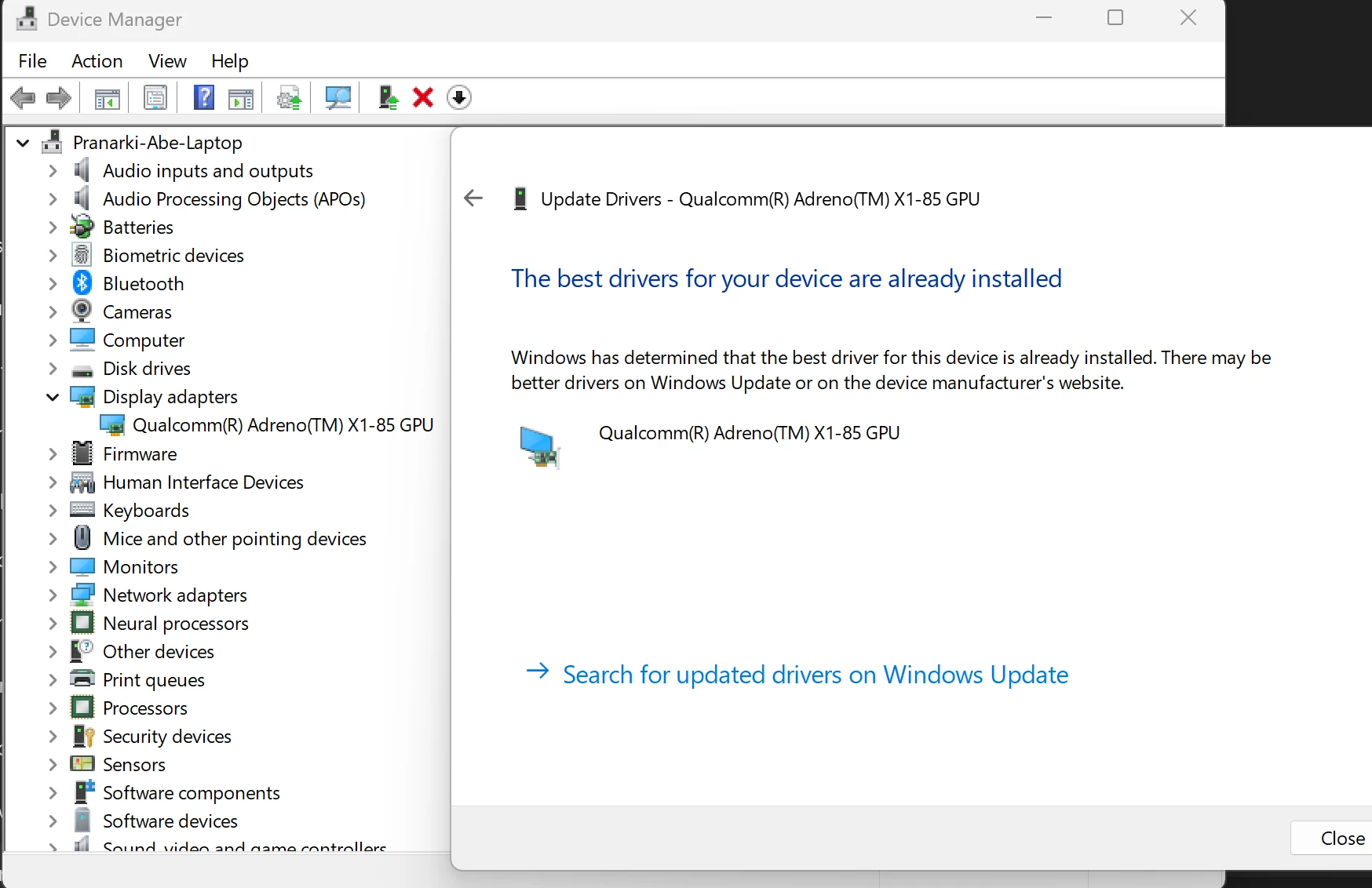 I have already updated to the latest GPU driver from the Qualcomm Adreno website. To be clear, my device is using the latest ARM64-based system with the Qualcomm Adreno X Elite series.
