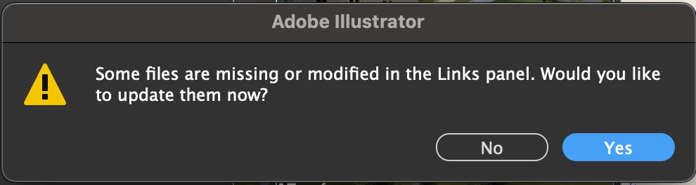 In the latest version of Illustrator Beta, it continuously displays a message about updating links, even when