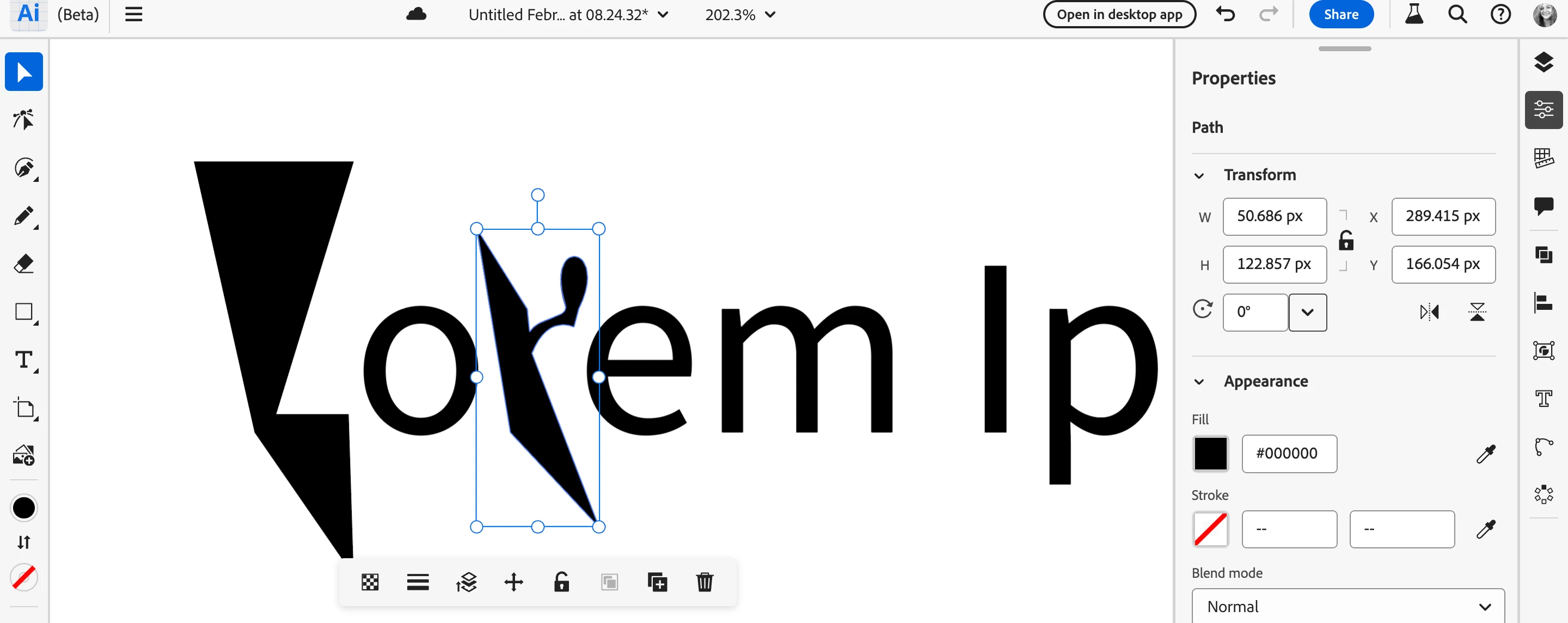 Illustrator on the web (Beta) crashes while trying to edit Points on Type
