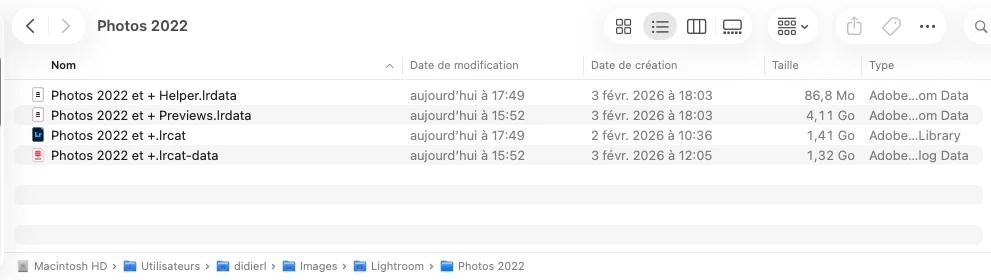 2 additional fles (temp files) Photos 2022 et +.lrcat-shm et Photos 2022 et +.lrcat-wal