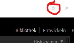 kann ich die ModulSchaltflächen in LR classic nicht mehr erreichen. Oben rechts ist zu sehen Bibliothek / Entwickeln / K (dann müßte Karte kommen, aber es ist nur noch das K zu sehen, Drucken usw. sind nicht erreichbar. Der Bildschirm hat 1200 px Breite, bsiher hat das funktioniert.