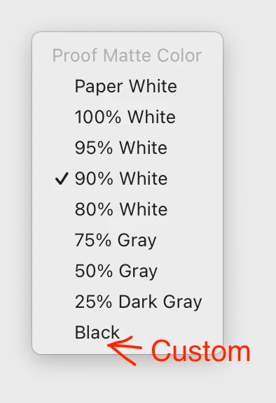 Thanks! While I have your ear, the ability to change to a custom background color in Library/Develop instead of just having to choose between White / Light Gray, Medium Gray etc... like in photoshop would be amazing. The main reason I work in Soft Proofing Mode is the ability to choose 80/90/95% white!