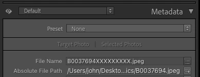 4. Restart LR and observe Absolute File Path now shows the new file name.