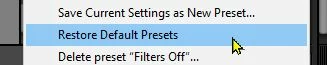 "Where is this drop down menu to access "Restore Default Presets"?-"