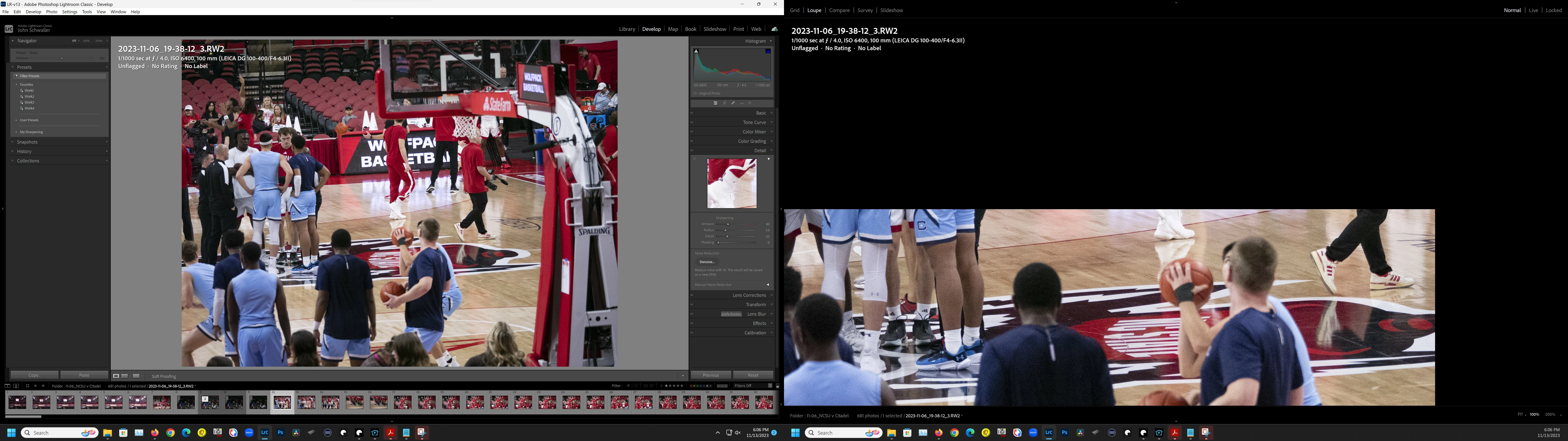 Sometimes it will zoom in and out as before but most of the time it doesn't and one of the selected pics for comparison won't even show (just black) or sometimes even zooms in at a different percentage compared to the other. This only occurs when in the Develop module.