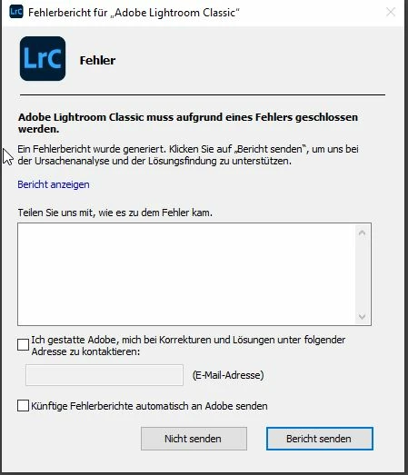My Lightroom has been updated to new version today and I am not able to start it, when I open LR it opens the library in the background but after a while it shows crash, I tried to send error report to Adobe.