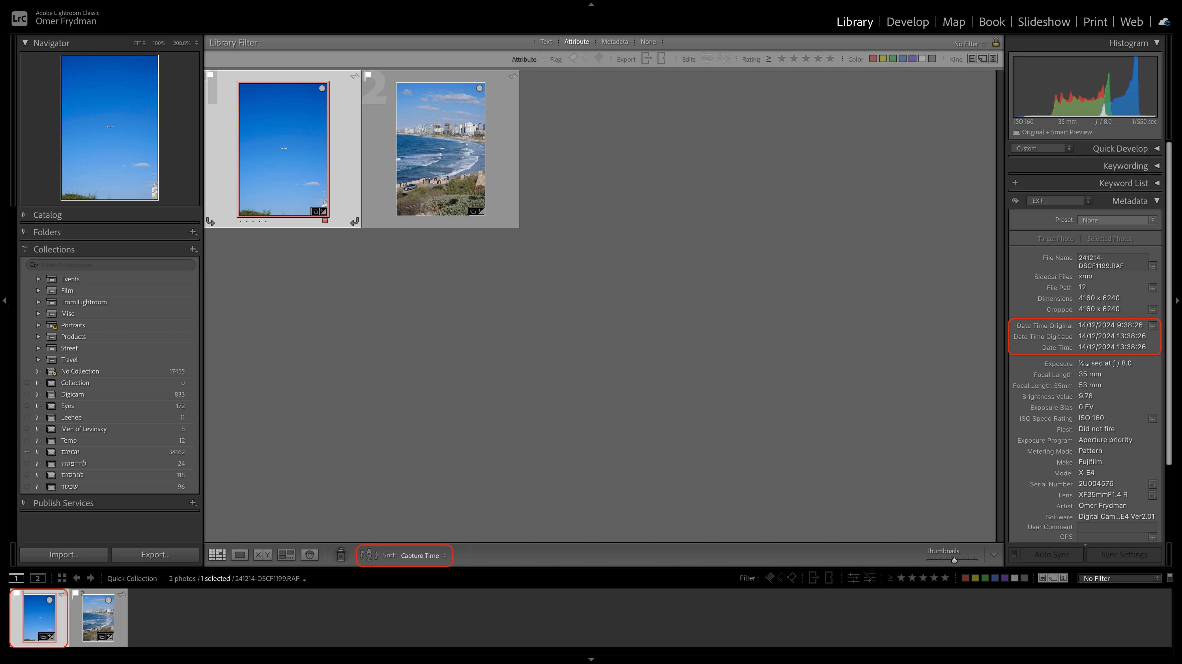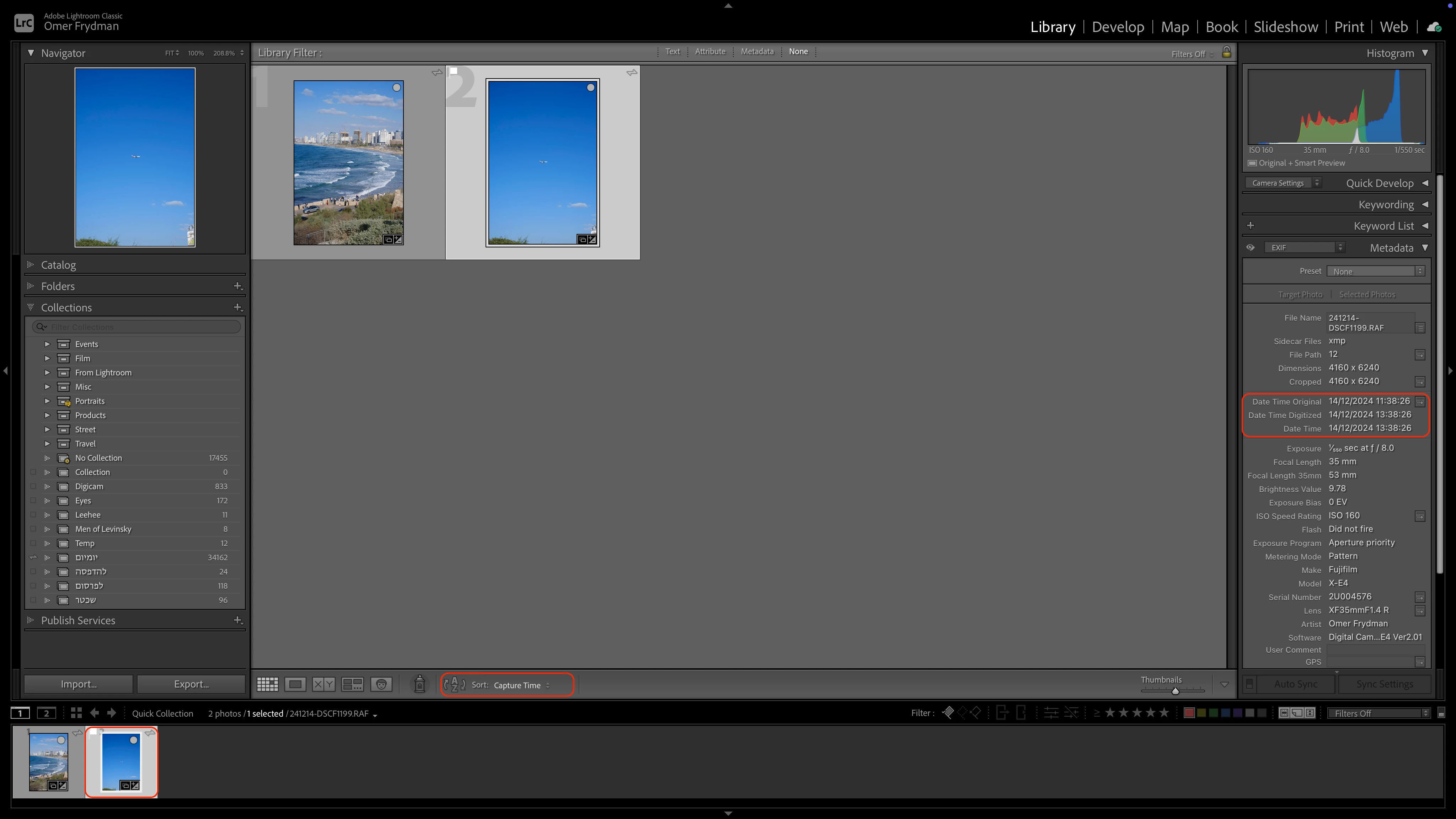 This time, for some reason, after adding the photos to the synced collection, Lightroom seems to modify their capture date and time, rendering them all wrong. I was adding photos from a single day, and somehow they ended up getting dates a few days before, on the same day, a few days after and even December 20th, which hasn't even happened yet. Same goes for the capture time, all over the place.