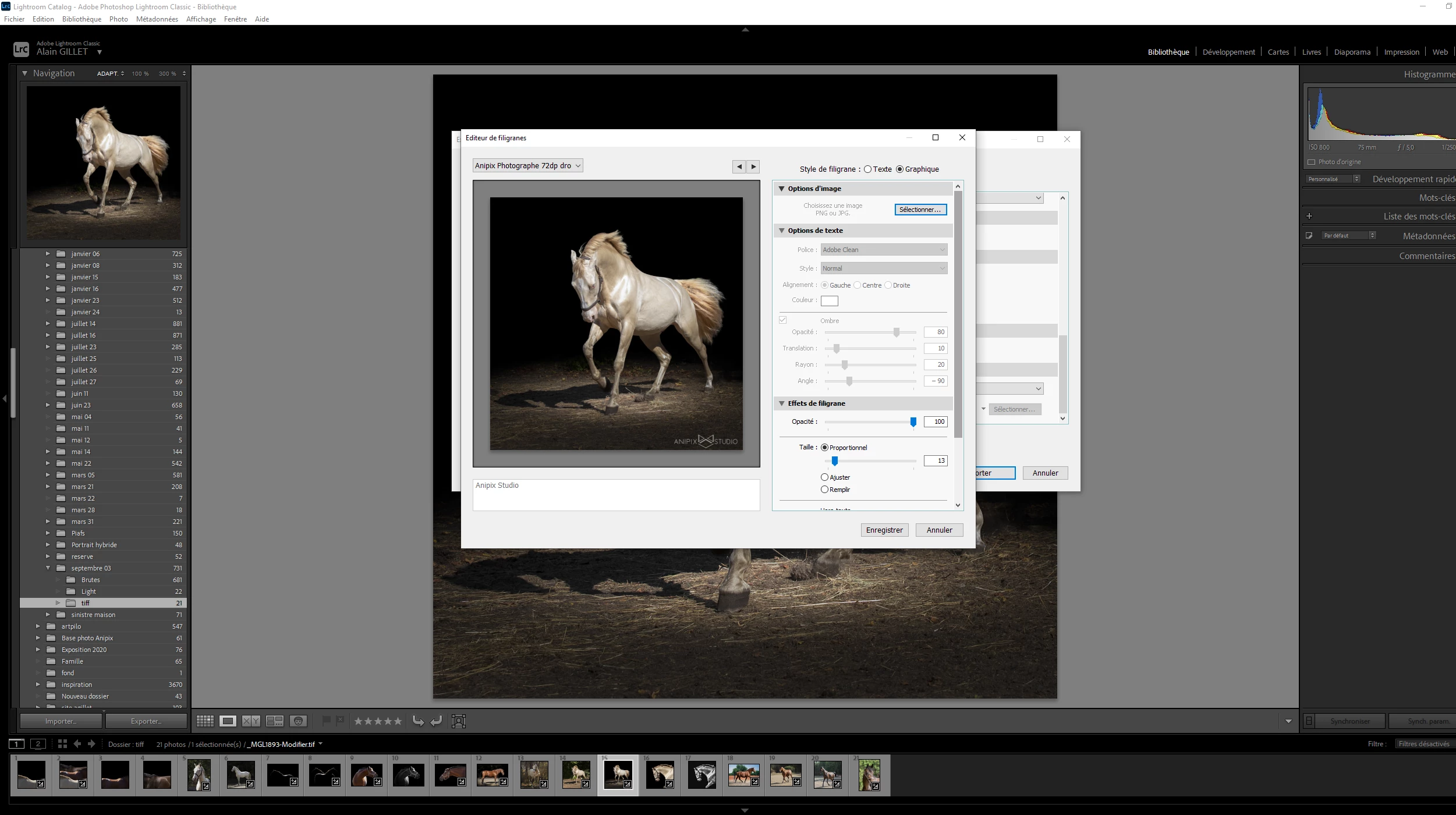 Le filigrane graphique apparait bien dans la fenetre de modification des filigranes, mais n'apparait pas sur la photo exportée?