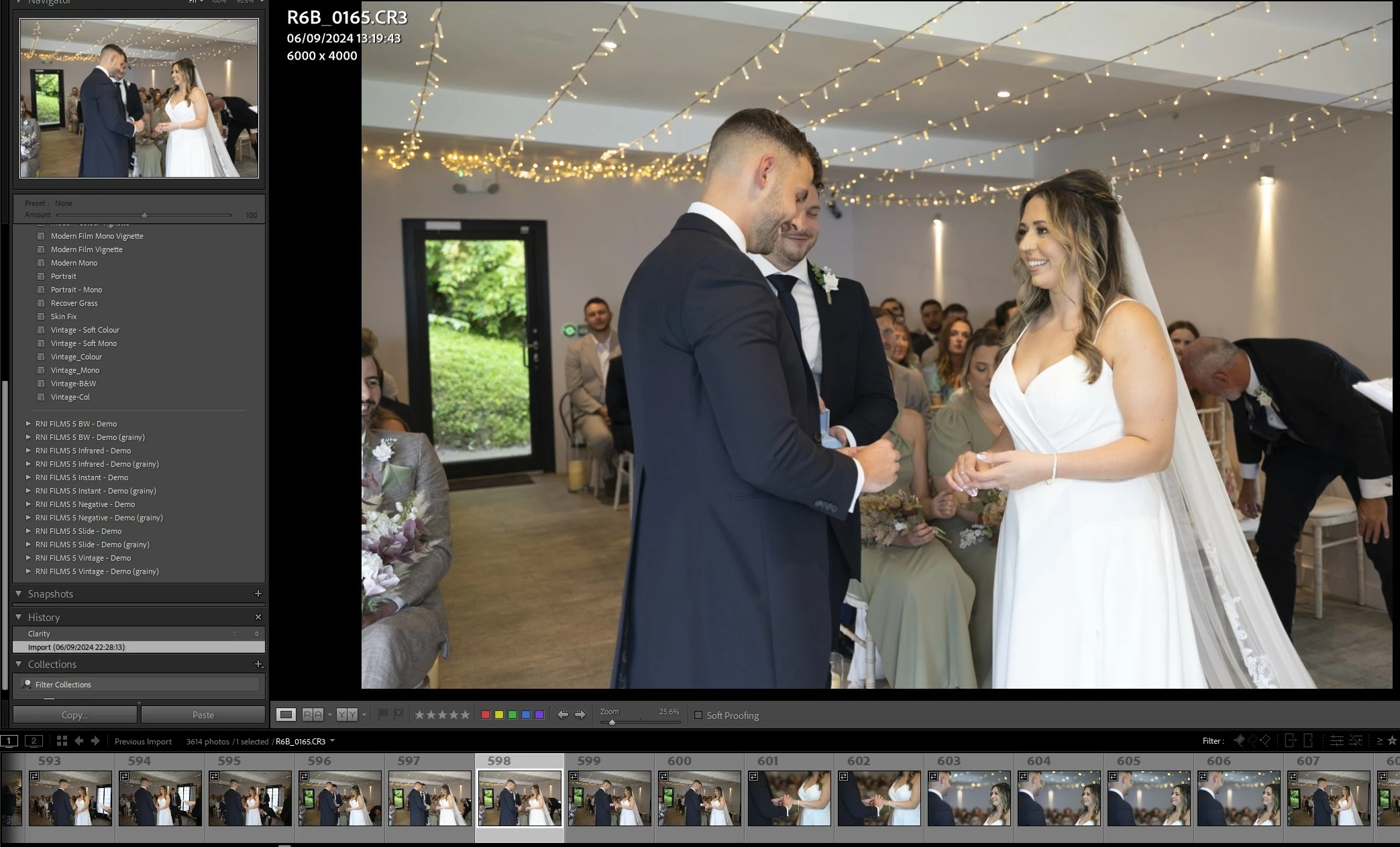 I then circle the bride's arm before adjusting the clarity slider a tiny amount and you can see the white balance updates.