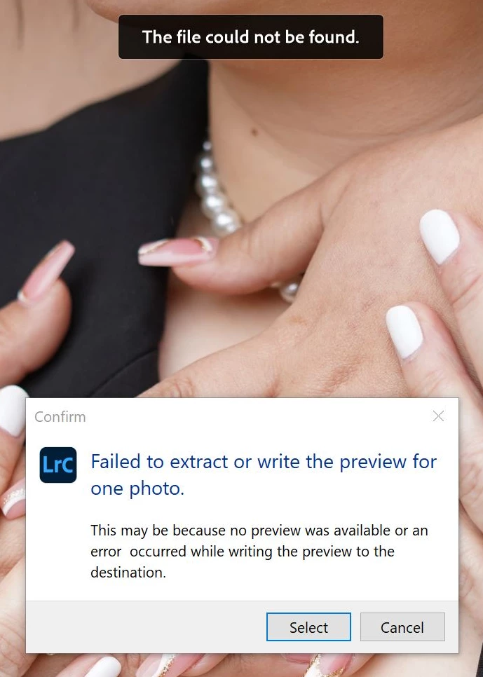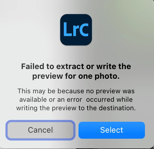 This is the error message I get. I followed the link: https://helpx.adobe.com/lightroom-classic/kb/extract-previews-for-lost-images-lightroom.html Extracted preview script for Lightroom Classic 13.3 and later.
