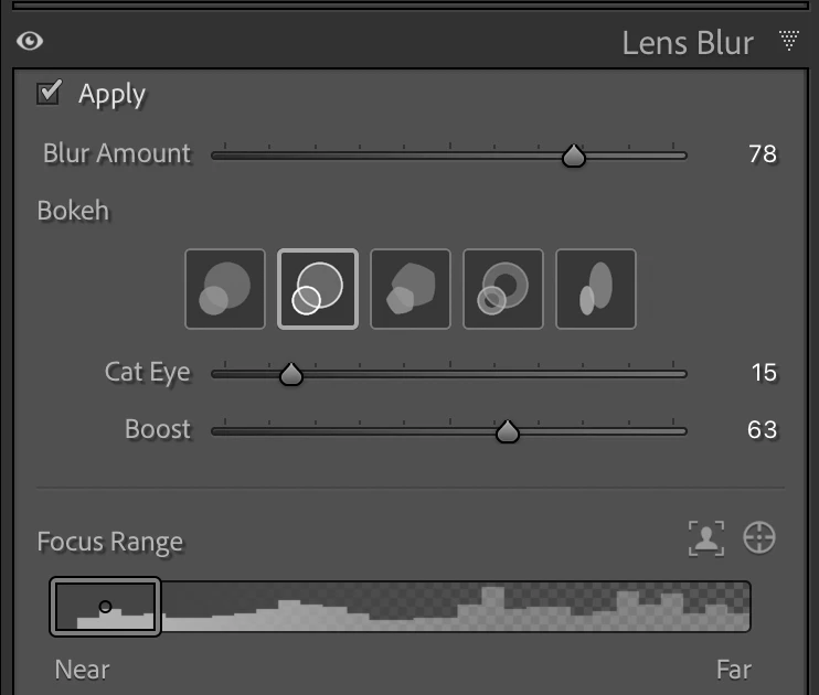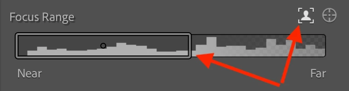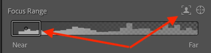 2. Observe that a.jpg has these Lens Blur settings, including a Focus Range that's been changed from the initial AI subject detection: