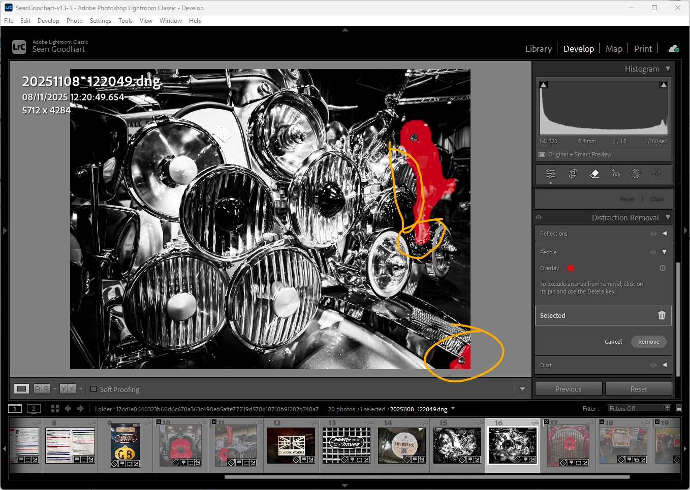 I like the distraction removal tool, I'm trying to use the "remove people" action to tidy up the background of a shot I took at a recent classic car & motorbike show.