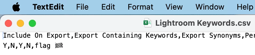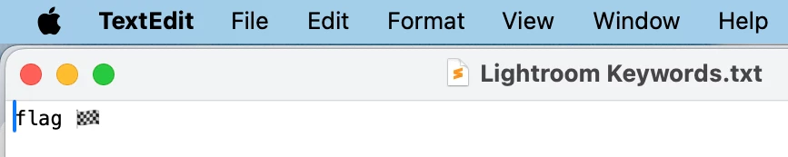 3. Open the .csv and .txt files in a UTF-8 capable app, e.g. Textedit (Mac) or Notepad (Win). Observe that the flag symbol is present in both: