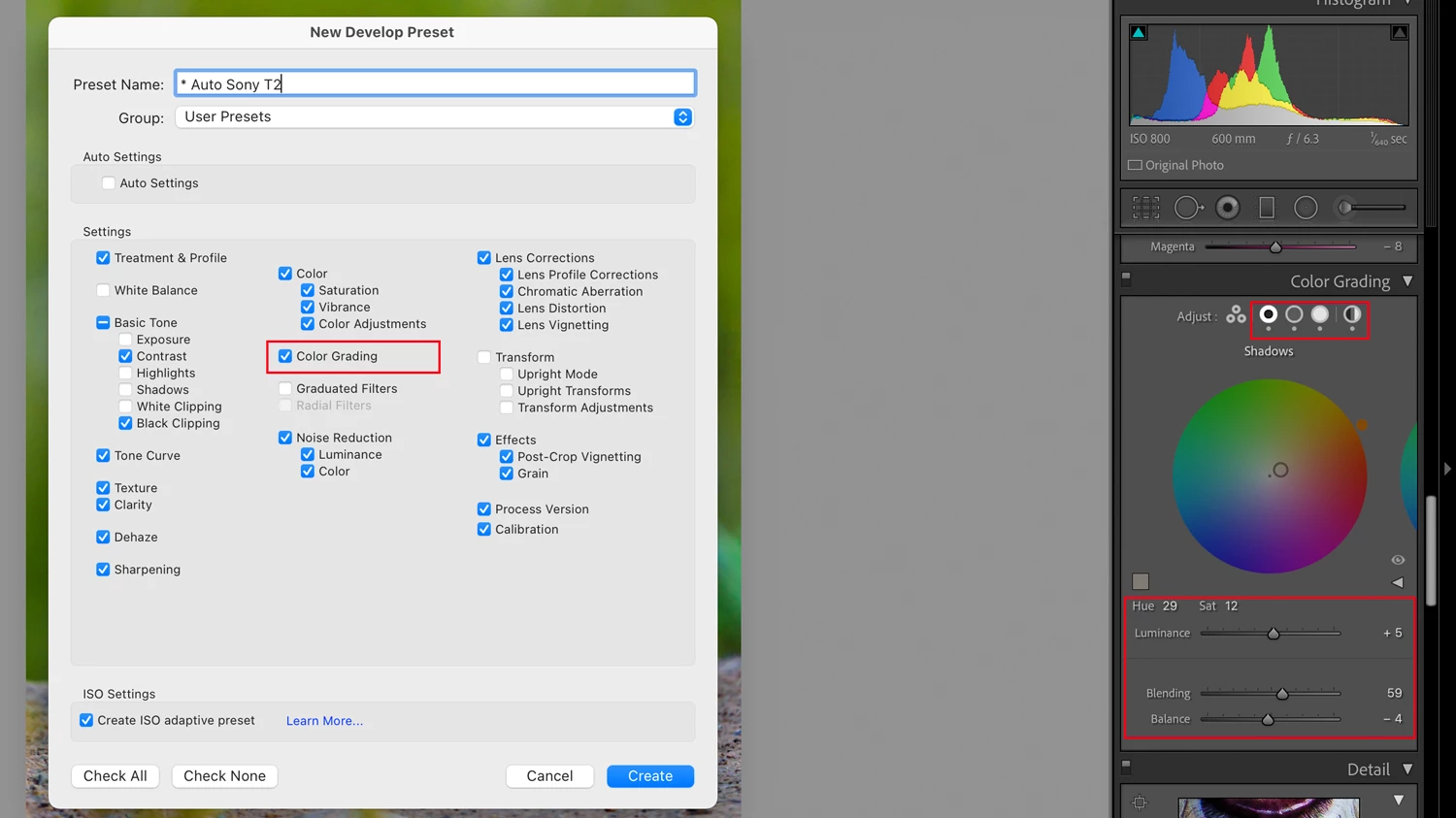 If the ISO-Adaptive Preset box is checked, the Color Grading portion of the preset is not applied.