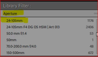 P: Library Filter (Shutter Speed and Aperture) Click Arrow does not work
