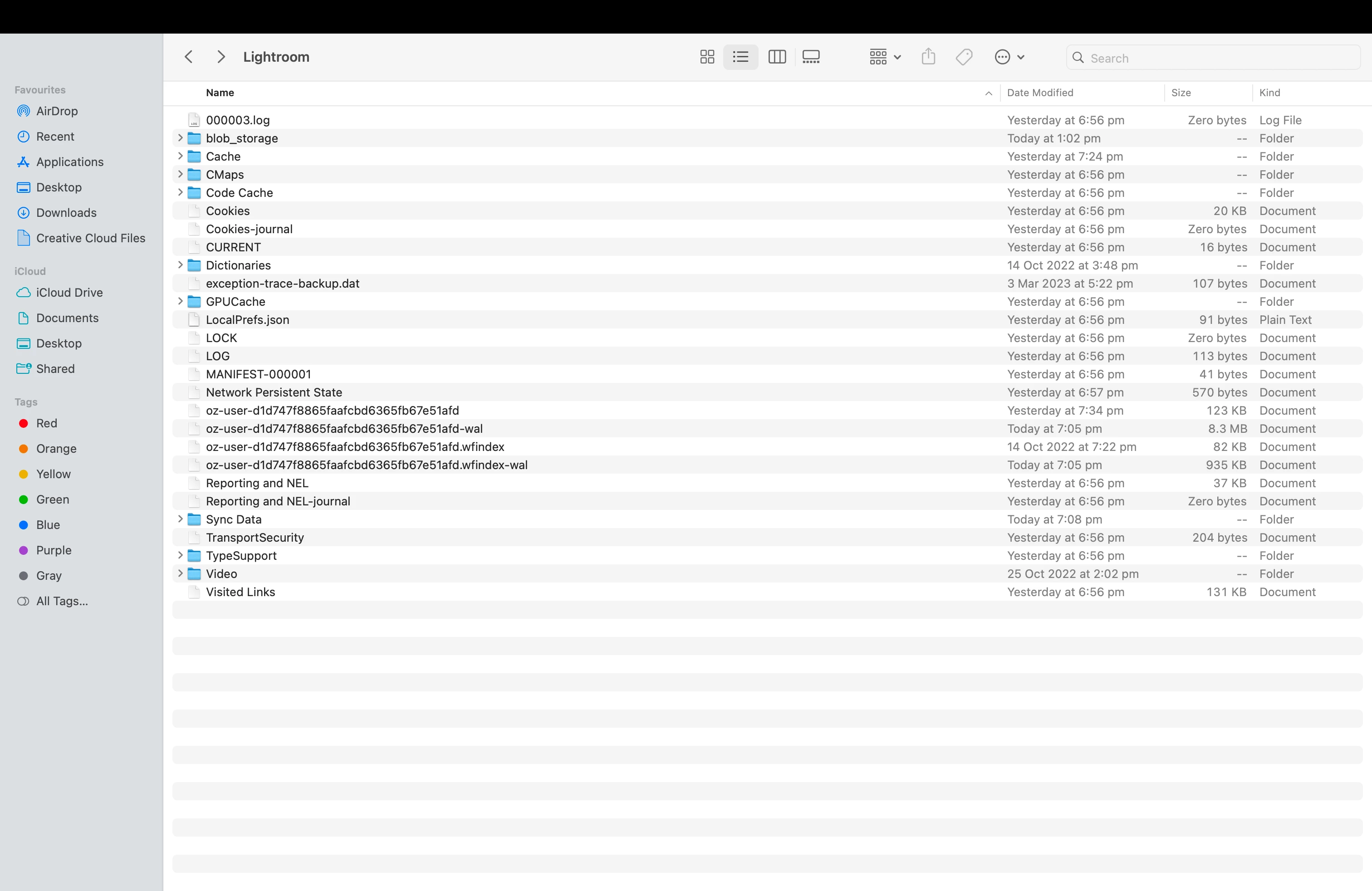 - Wiping all data files from the computer and letting LRC create a fresh Lightroom folder and catalog file (sometimes it does that, sometimes it hangs before the folder is created).