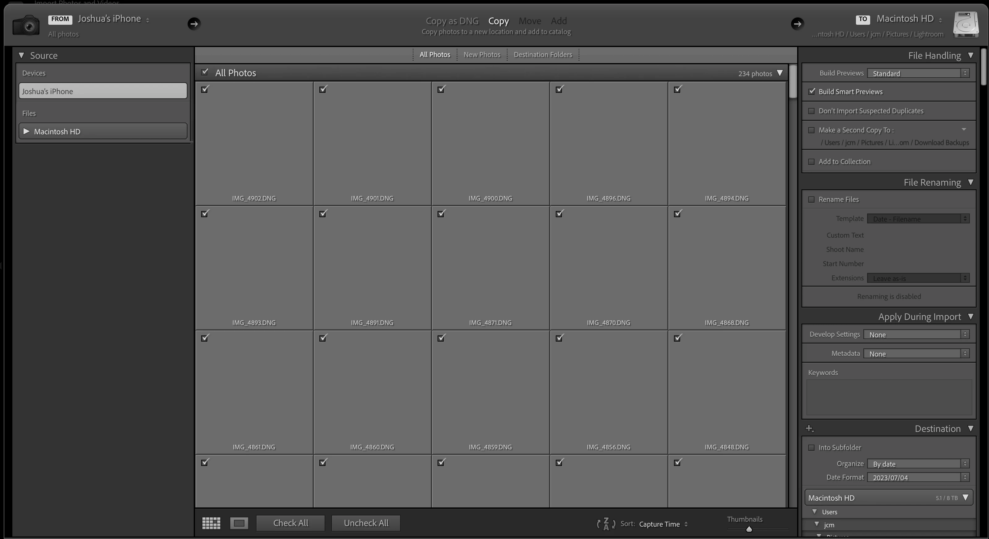 Since this issue is happening with multiple catalogs and cameras, I was thinking it was either with my Mac Studio that stores the catalogues, or my OWC Thunderbay external since it stores the photos. However since this issue seems to happen before I technically need to select the destination drive, now I’m thinking the issue is my computer where Lr is running.