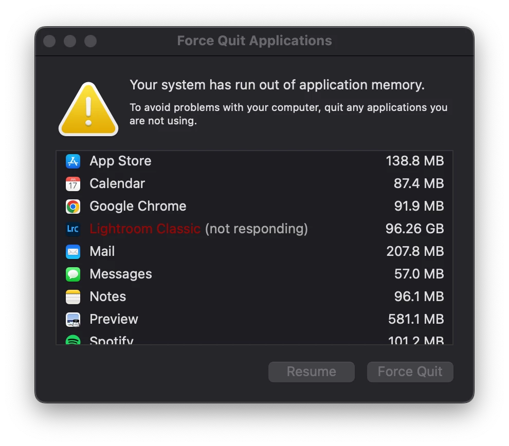 seit der Version 12 (auch 12.01) scheint Lightroom den Programmspeicher immer weiter zu füllen, bis dieser überläuft.