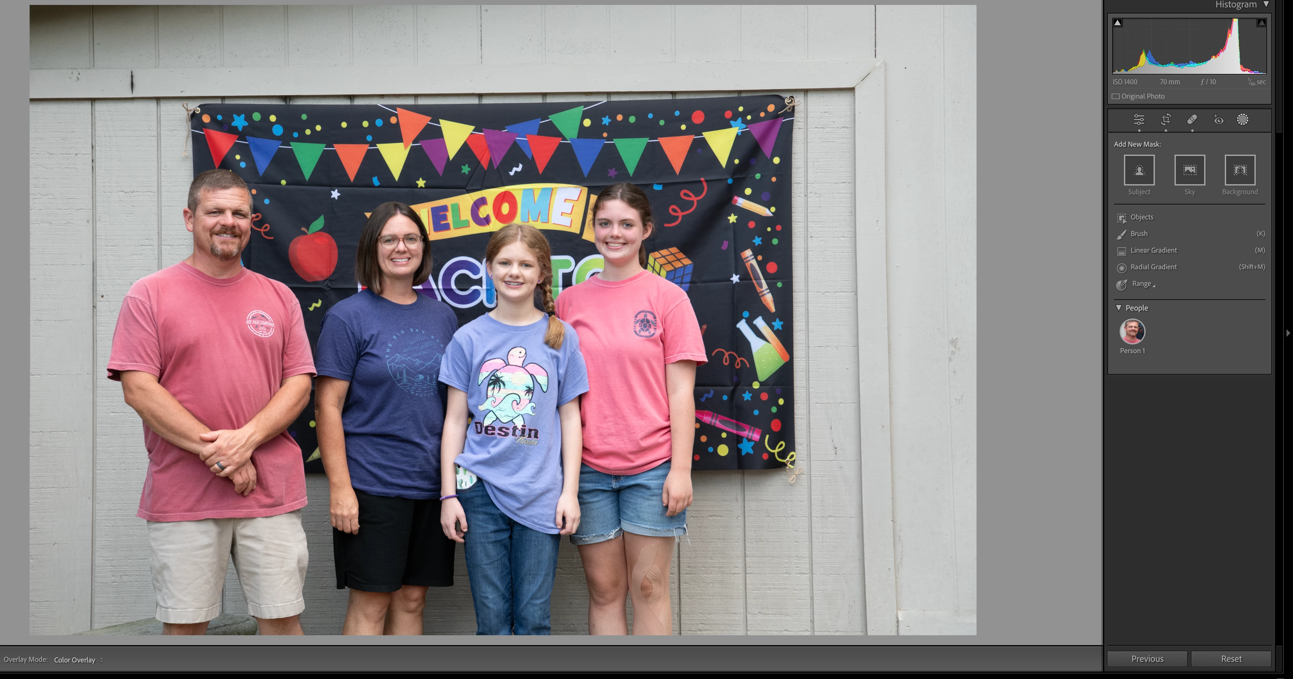 This seems to be issue with my iMac Desktop. Screenshot of my system uploaded. My photos & catalog are stored on an Ext. HD. When in LR Develop Module, I can click on Masking wheel for a group photo & it will "process the people" for a few seconds. Then, it will only display "person 1", regardless of the number of people in the photo. (2nd Screenshot). When I click on that 1 circle, the enitre photo is shaded in red, or sometimes the whole group. It will NOT separate group photos into person 1, person 2, person 3, etc. I can take this same External HD, plug it into my MacBook Pro, open the same photo in LR there, click on the Masking wheel, let it process the people, & it WILL separate the group in to each individual (person 1, person 2, etc.) I am wondering if I have inadvertenly clicked on a setting that is causing this issue???
