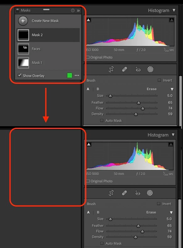 - BUG - When I hit the Mask Icon on the develop menu (the round shaped patch like thing all the way to the right.) to create a second mask after having already created a mask, the Mask Menu with it's various chocies about what kind of mask to create also does not show up. So you cant create one except by using a short-cut key.