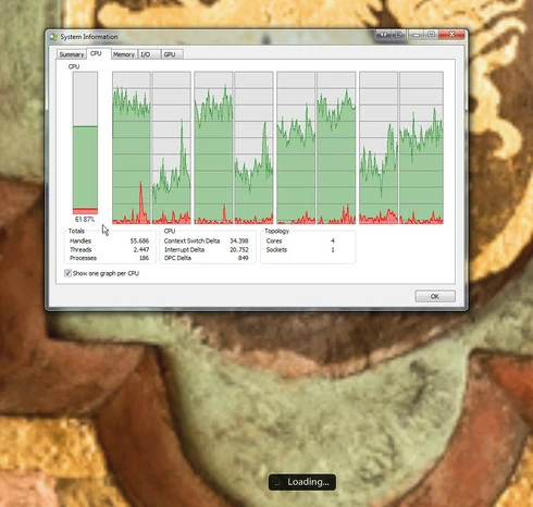Below is an example of the load while rendering a preview for more than 2 minutes.