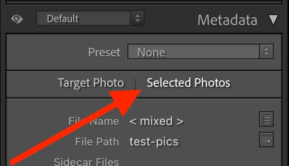 5. In the Metadata panel, select Target Photo.