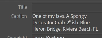 4. In the Metadata panel, enter this into the Caption field: