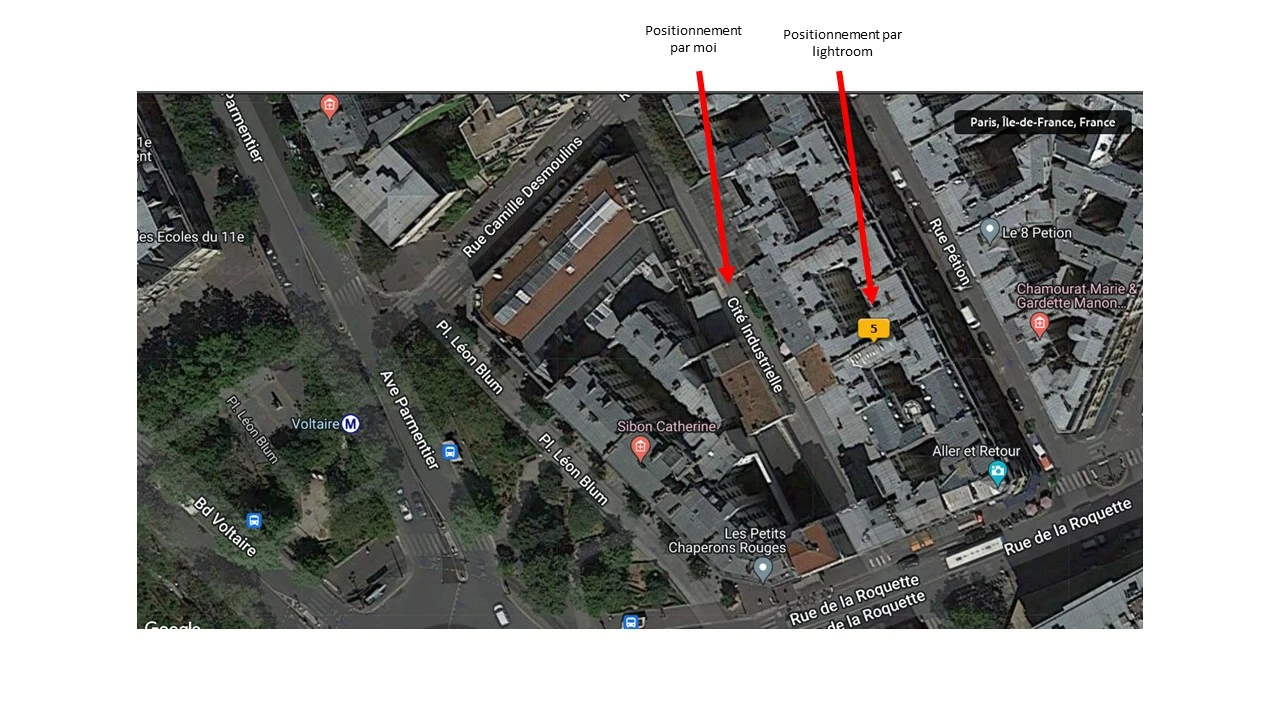 Je positionne manuellement les photos dans l'onglet "Cartes'. Le problème est que j'observe un décalage entre l'endroit où je souhaite positionner les photos sur la carte et le positionnement que le logiciel effectue.