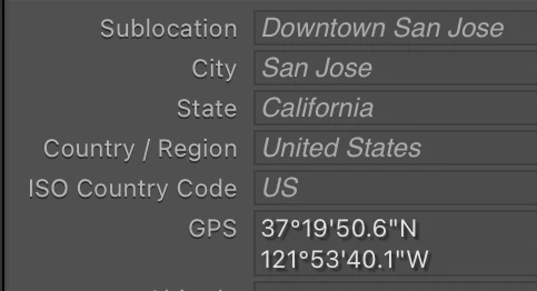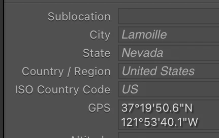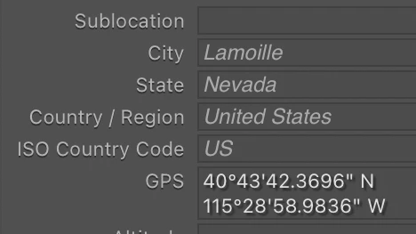 3. In the Metadata > Location tagset, set GPS to these coordinates: