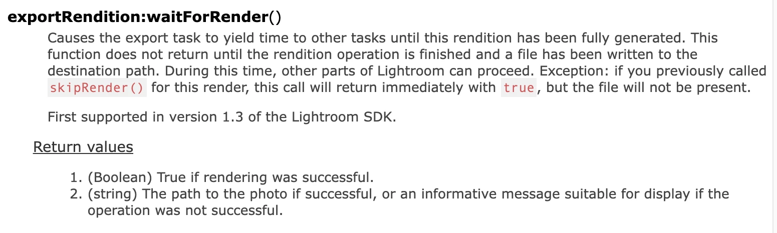 The SDK method exportRendition:waitForRender() returns incorrect results for videos. The documentation says: